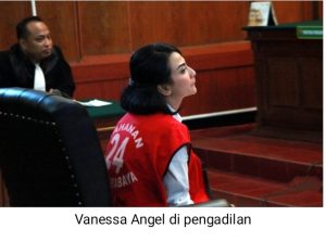 Vanessa Angel dinilai melanggar pasal 45 ayat (1) Jo Pasal 27 ayat 1 UU RI No. 19 tahun 2016 tentang Perubahan atas UU RI No. 11 tahun 2008 tentang Informasi dan Transaksi elektronik Jo. Pasal 55 ayat (1) ke-1 KUHP.
