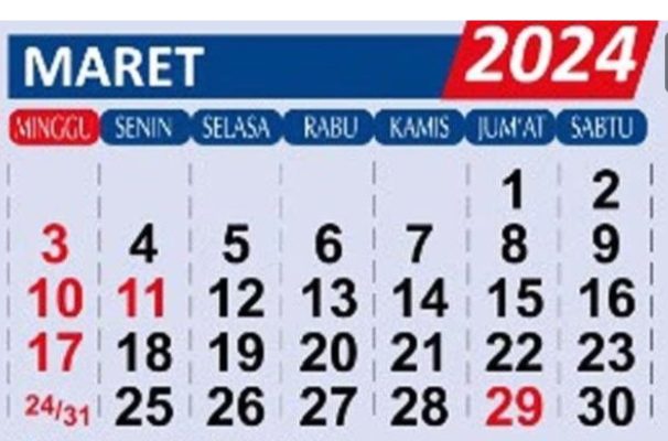 - 10 Maret (Minggu) – tanggal merah akhir pekan