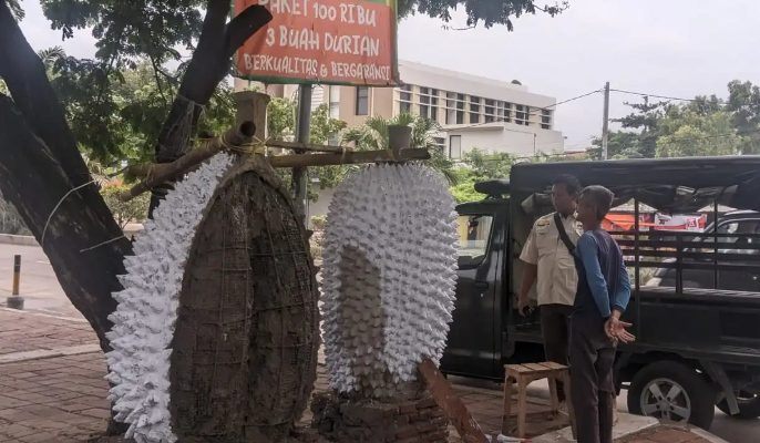 “Sebelumnya kami juga telah memberikan teguran kepada pedagang yang membuat tugu durian di atas trotoar tersebut. Atas adanya bangunan itu, pihaknya mengimbau kepada si pembuat tugu agar segera membongkar secara mandiri. Apabila tidak dibongkar sendiri, nanti dibongkar sama pol pp,” sambungnya.