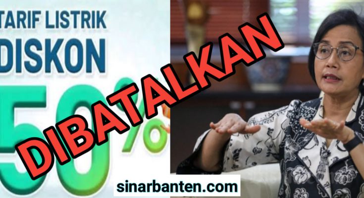 SINARBANTEN.COM, Jakarta – Di bulan Mei yang lalu pemerintah sudah mengumumkan pemberian diskon tarif listrik sebesar 50% pada Juni—Juli 2025 kepada masyarakat yang memiliki daya listrik 450-900 VA. Namun kini pemerintah melalui Menteri Keuangan Sri Mulyani Indrawati mengatakan pemerintah memutuskan untuk membatalkan rencana tersebut karena proses penganggaran untuk insentif tersebut jauh lebih lambat.