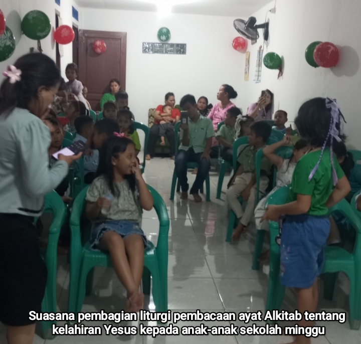 Setelah itu dilanjutkan dengan pembacaan Liturgi ke-1, ke-2, dan je-3 dimana anak-anak Sekolah Minggu maju ke depan altar untuk membacakan ayat-ayat Alkitab tentang kelahiran Yesus, sebagai pengingat akan penggenapan janji Allah kepada umat-Nya.